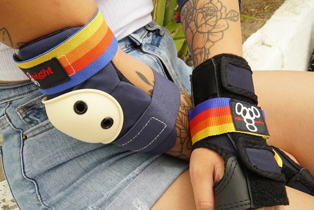 Triple 8’s Saver Series Pad Set includes one pair each of Kneesaver Knee Pads, Elbowsaver Elbow Pads and Wristsaver Wrist Guards, packaged together in a convenient skateboard pad set. Knee pads and elbow pads are ergonomically designed, and are made of high grade durable fabrics, with EVA foam padding, and polycarbonate full coverage caps for superior protection that won’t restrict movement. The wrist guards offer rigid support and protection with high-density, impact-resistant molded ABS splints and tough 4-way stretch nylon mesh for a snug fit. Ideal for skateboarding, biking, roller derby, and inline skating (roller blading), all pads feature an easy on-and-off sleeveless design and wide, reinforced elastic straps with adjustable hook and loop closures that ensure a secure fit. The Triple Eight Saver Series Pad Set is available in four sizes to fit kids, youth, and adults (size determined by wrist guard; measure around the hand at knuckles): Junior fits 6.0-7.0 inches, Small fits 7.0-8.0 inches, Medium fits 8.0-9.0 inches, and Large fits 9.0-10.0 inches. Manufacturer’s 180-day limited warranty.